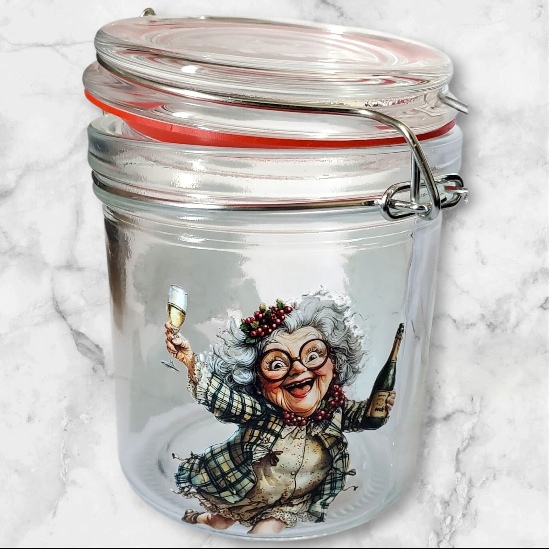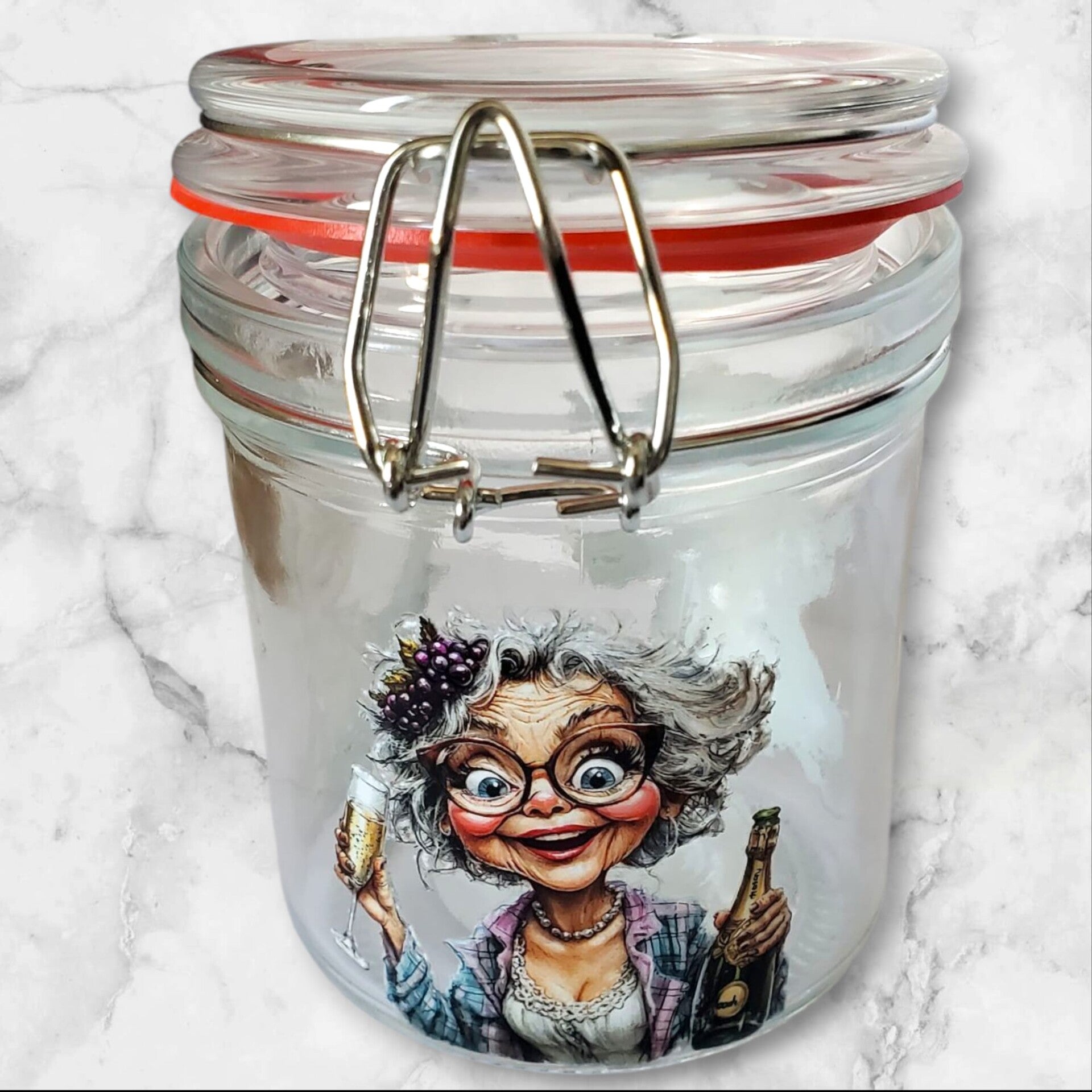 Petit pot à confiture hermétique – Motifs mamies festives