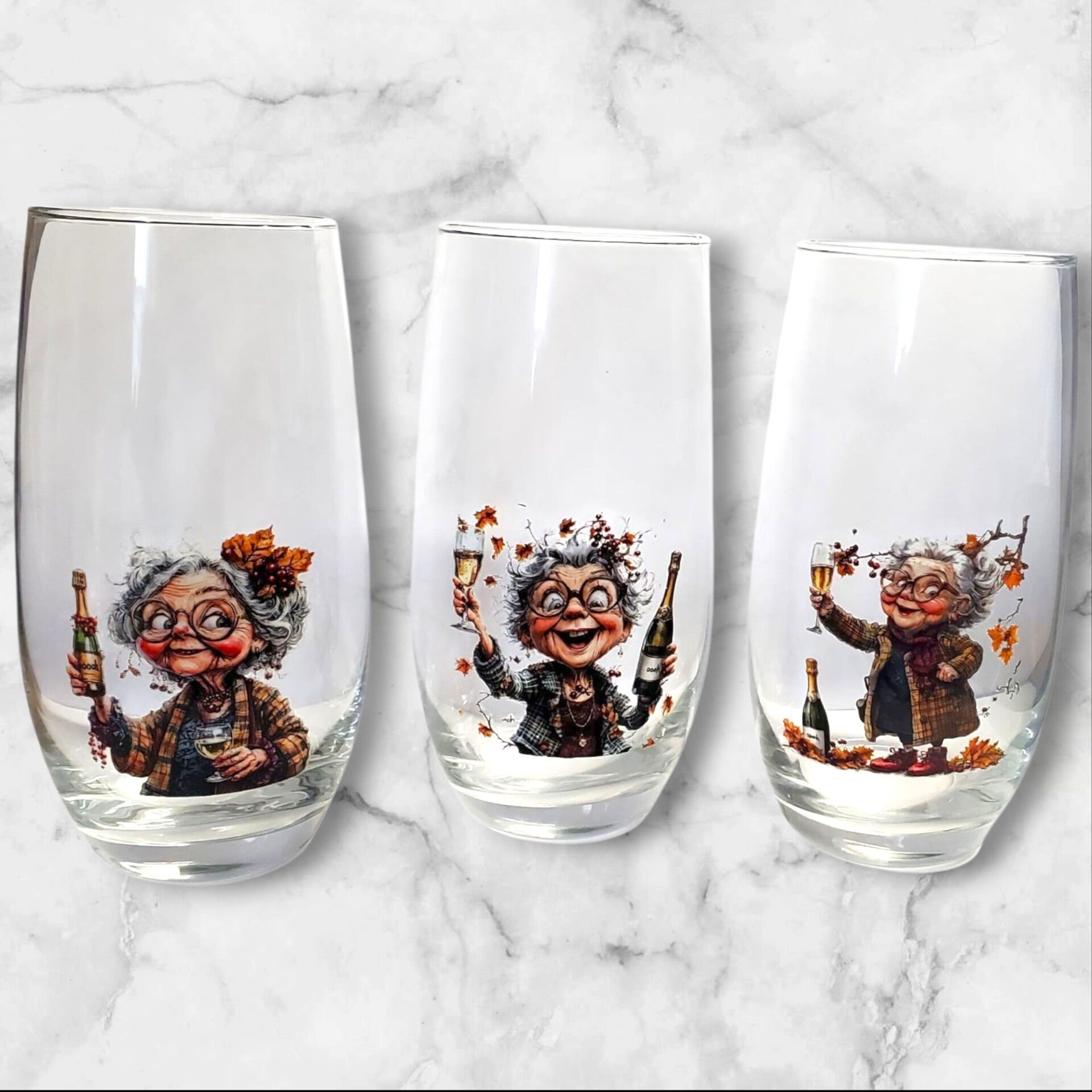 Lot de 3 verres 36 cl personnalisés – Motifs mamies en folie – Lavage à la main conseillé