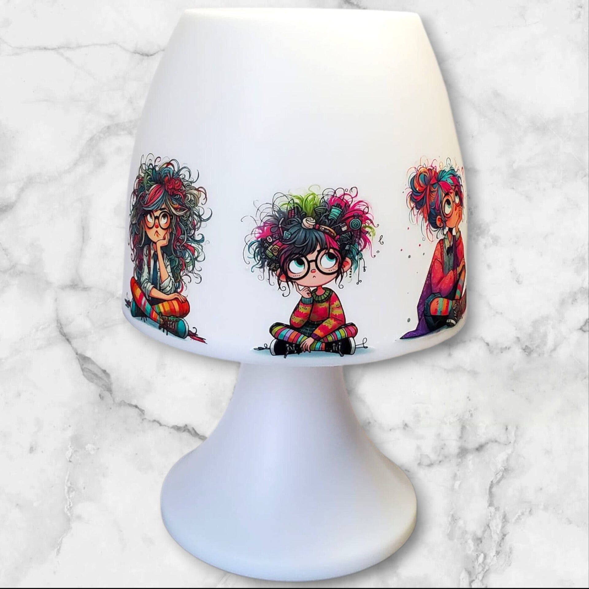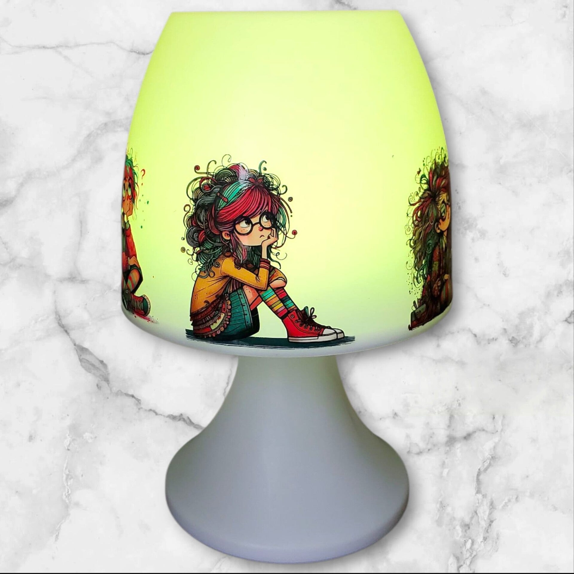 Lampe veilleuse multicolore – motif petites filles bohèmes colorées – 18,5 cm
